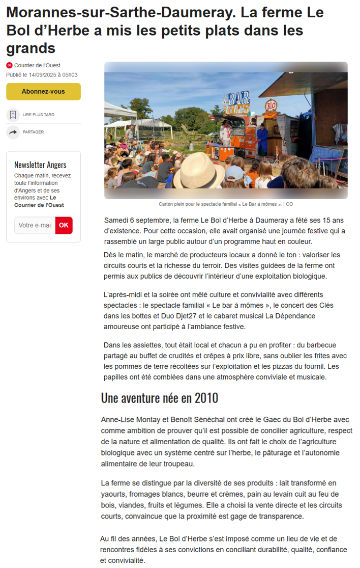 15 Ans du Bol d'herbe : Article Courrier de l'ouest