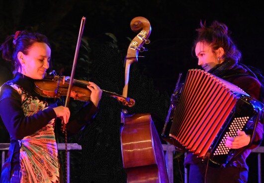 "Un violon, un accordéon et deux voix se rencontrent avec pétillance et poésie. Sur des chansons aux accents méditerranéens, celtiques ou brésiliens,