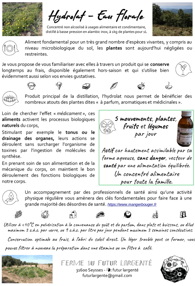 En hydrolat, multiplier par 4 le nb de cuillères de plante sèche à diluer dans l'eau froide ou chaude à température de boisson.