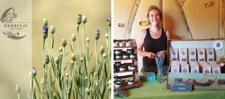Gwenola vous propose ses produits issus de cultures, cueillettes sauvages et transformation de plantes au local des Fermes du Doustre.