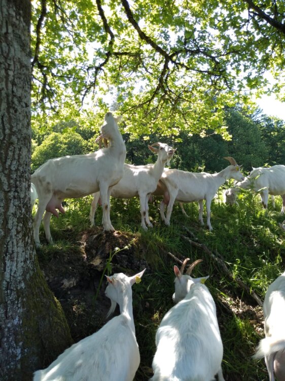 Nos chèvres croisées Saanen-Alpine pâturent nos prairies naturelles ainsi que des zones boisées et enfrichées, elles participent ainsi à l’entretien et la réouverture des milieux.