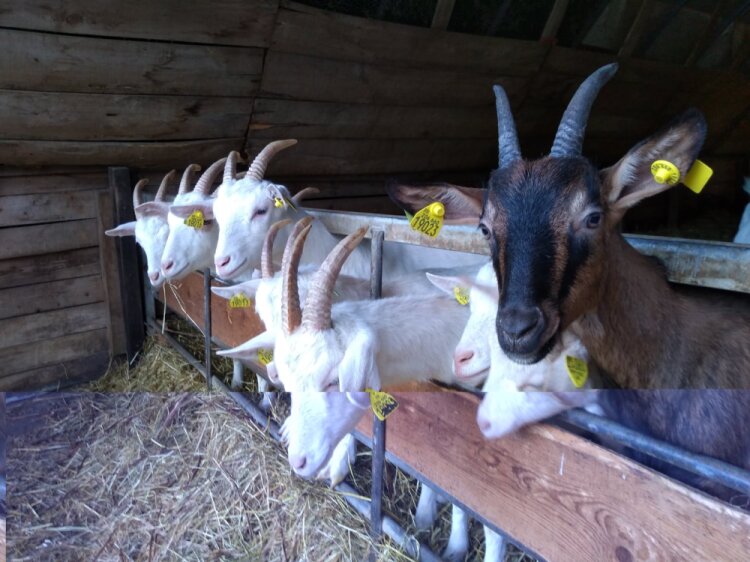 Leur ration sèche se compose du foin de nos prairies ainsi que de foin de luzerne, de céréales et d’un aliment complémentaire certifiés sans OGM. Concernant la santé du troupeau, nous travaillons au maximum avec des produits naturels : extraits de plantes, diverses huiles et minéraux naturels certifiés Bio.