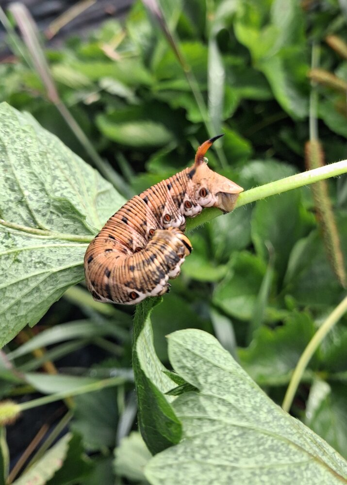Au passage, on trouve de drôles de bestioles, comme ce sphinx du liseron, chenille qui deviendra un grand papillon de nuit.